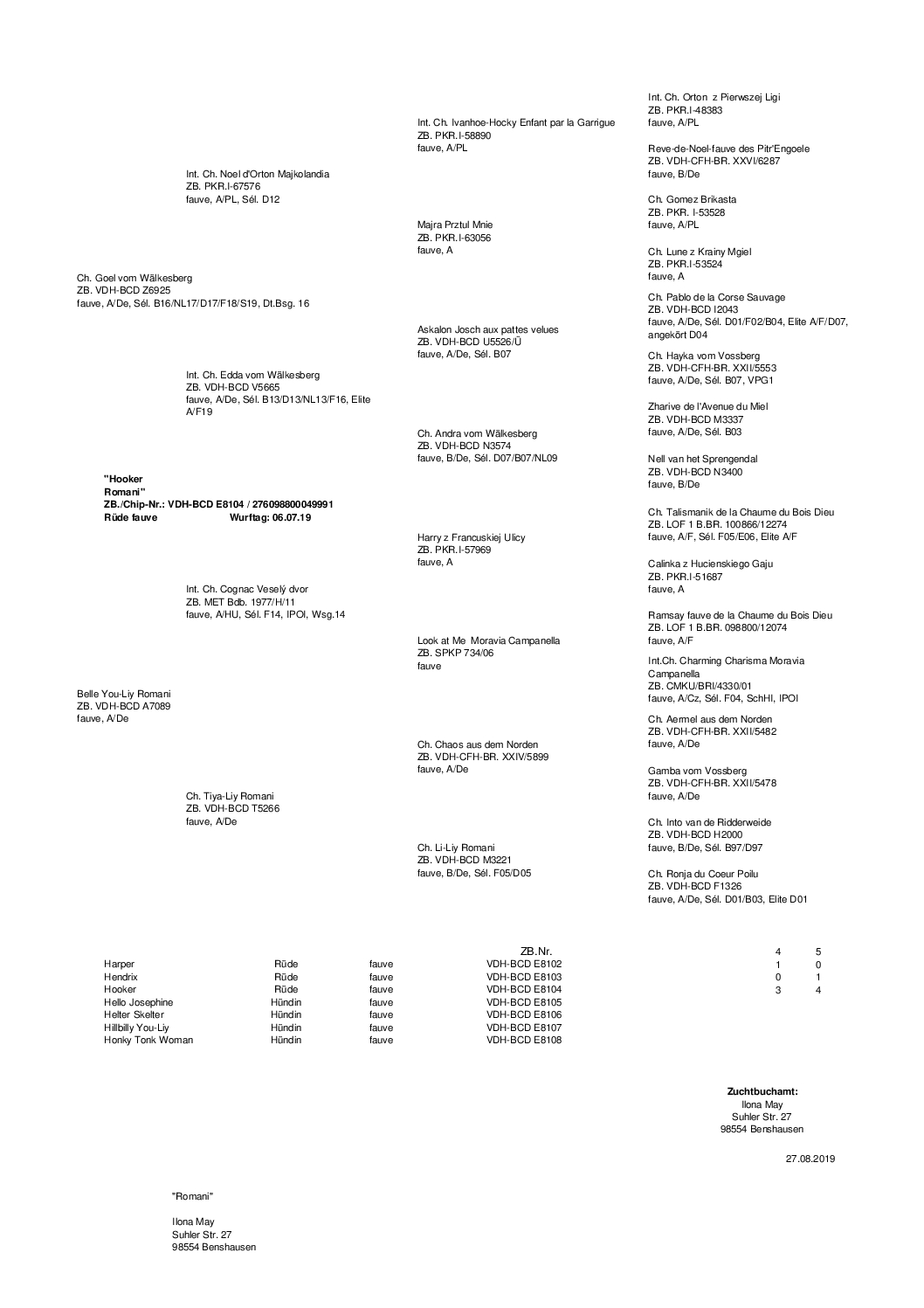 Bei WORLDPEDIGREES.com ist Ch. HOOKER ROMANI ebenfalls zu finden.